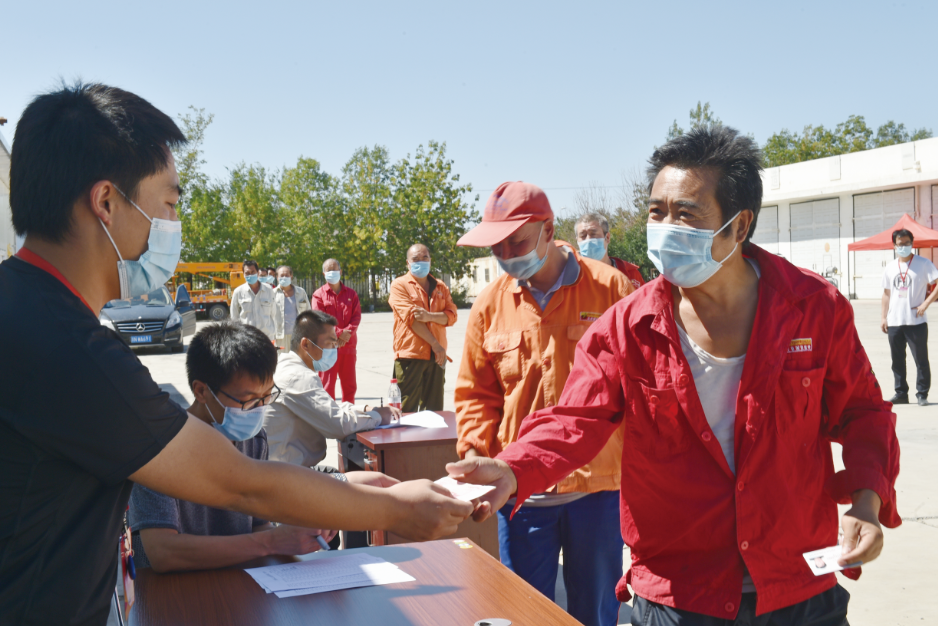 和500元現(xiàn)金同時交到建筑工地外來務(wù)工人員手里的,還有一封市總工會致全體工程建設(shè)者的慰問信。信中寫道:“向始終堅守在這座城市的工程建設(shè)者們,致以誠摯的問候和崇高的敬意!希望你們再接再厲,繼續(xù)發(fā)揚連續(xù)作戰(zhàn)的作風(fēng),在做好個人防護(hù)、確保自身安全的前提下,咬緊牙關(guān)迎難而上,高質(zhì)量推進(jìn)項目建設(shè)和各項工作,為全疆打贏疫情防控攻堅戰(zhàn)、為克拉瑪依的城市發(fā)展建設(shè)貢獻(xiàn)力量?!?/p>