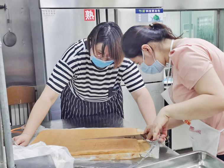 市第二人民醫(yī)院(康復(fù)醫(yī)院)工會(huì)組織院內(nèi)職工在醫(yī)院食堂為在崗員工做蛋糕。