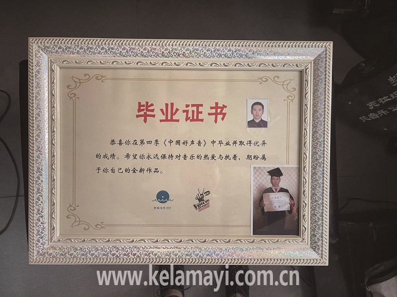 ????畢業(yè)證書是他加入“中國好聲音”第四季學(xué)員畢業(yè)時頒發(fā)的。這次的經(jīng)歷是別日克·斯達(dá)克歌唱事業(yè)的轉(zhuǎn)折。