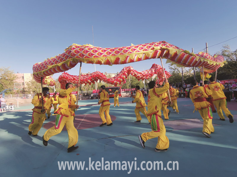 由居民組成的舞龍隊(duì)正在表演。 本報(bào)通訊員 謝楠 攝