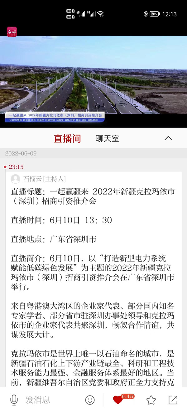 ????在視頻直播的同時(shí),“嗨克拉瑪依”還同步開(kāi)展了圖文直播,通過(guò)圖片和文字詳細(xì)介紹推介會(huì)當(dāng)天的亮點(diǎn),讓大家在“云參會(huì)”的同時(shí),進(jìn)一步了解推介會(huì)背后的意義。據(jù)了解,當(dāng)天直播共持續(xù)近4個(gè)小時(shí),吸引了超3.5萬(wàn)人次觀看。