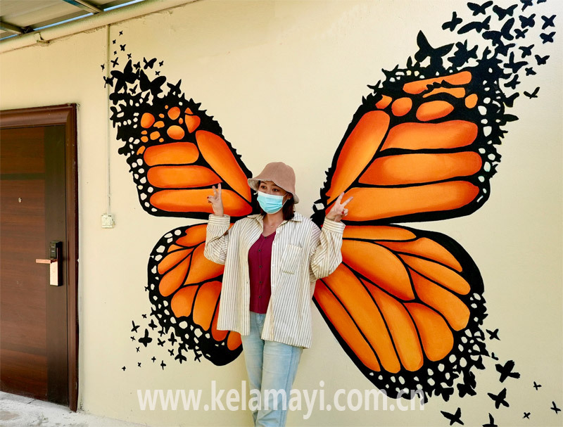 手繪藝術(shù)墻仿佛為民宿換上了“新裝”。