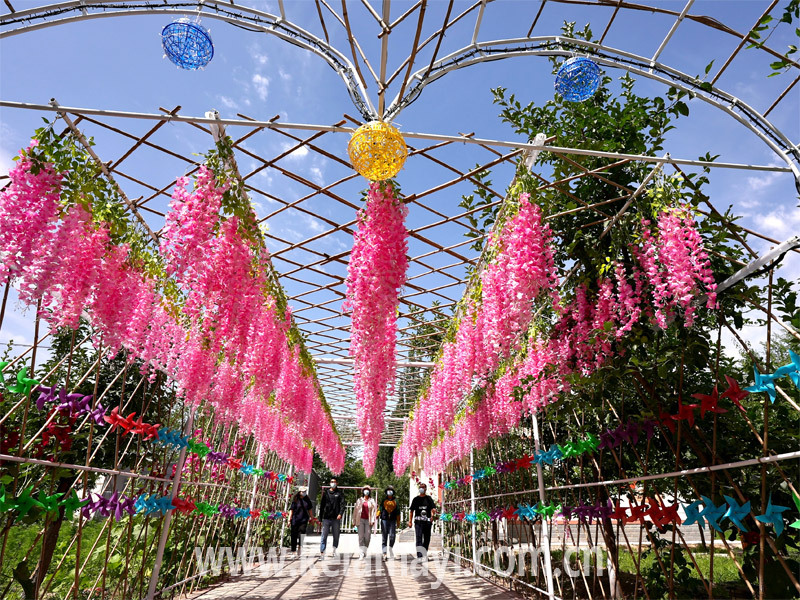 ????庭院花開,陣陣芳香撲鼻;廊亭雅致,串串葡萄繞藤;綠樹彩墻,聲聲鳥叫蟬鳴……????6月15日,當(dāng)記者走進(jìn)克拉瑪依區(qū)小拐鄉(xiāng)民宿區(qū),一片田園風(fēng)光展現(xiàn)眼前。