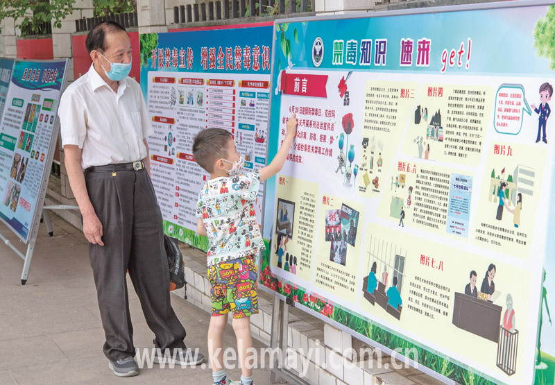 6月24日,“6·26”國(guó)際禁毒日主題宣傳活動(dòng)現(xiàn)場(chǎng),居民在觀看相關(guān)知識(shí)展板。 本報(bào)全媒體首席記者閔勇 攝
