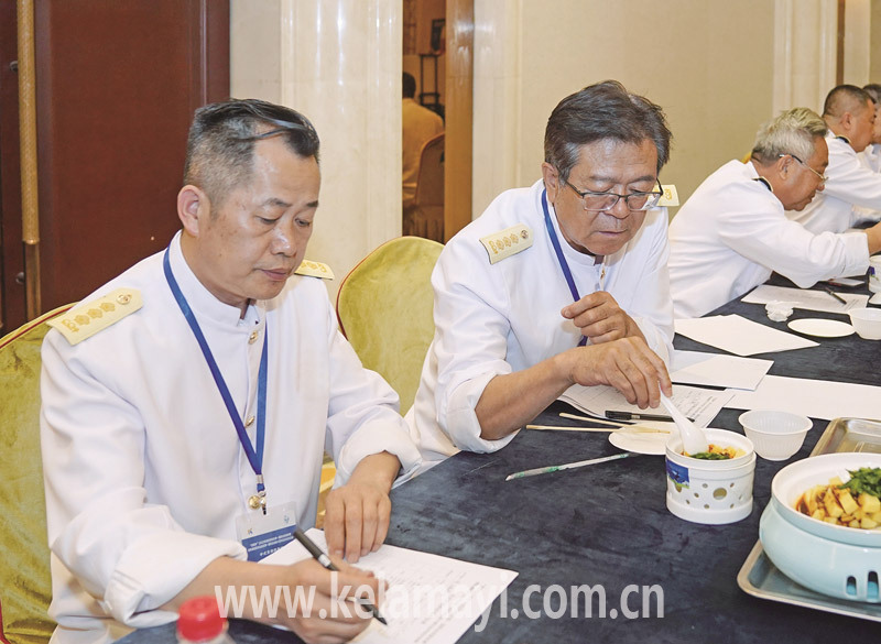 裁判品嘗選手烹調(diào)的菜品后,進(jìn)行點(diǎn)評(píng)、打分。