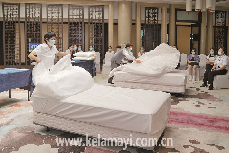 選手正在進(jìn)行客房服務(wù)員比賽。