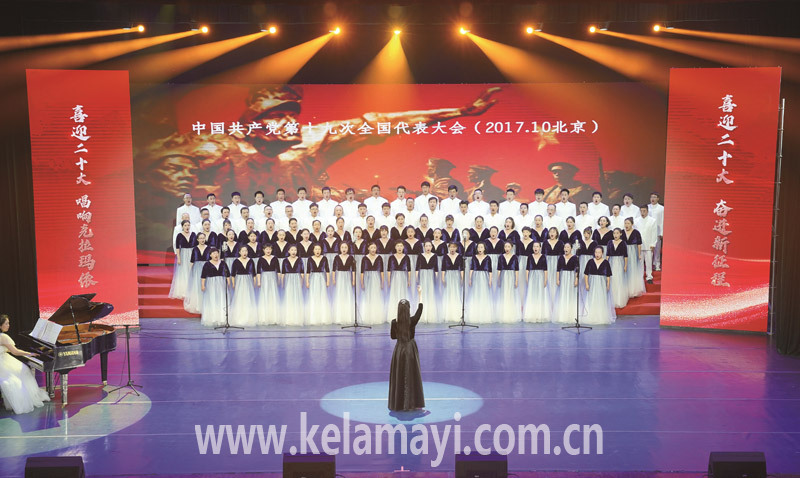 ????當晚的音樂會分為《頌歌獻給親愛的黨》《克拉瑪依之歌》《紅色傳承》3個篇章,7支合唱團現(xiàn)場演唱了《領(lǐng)航》《婁山關(guān)》《偉大的祖國偉大的黨》等13首歌曲。