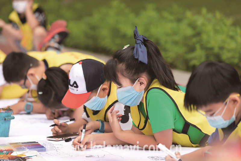克拉瑪依區(qū)文體旅游局開展“童心向黨獻禮七一”挑戰(zhàn)世界紀錄萬米環(huán)保藝術(shù)長卷繪畫活動。