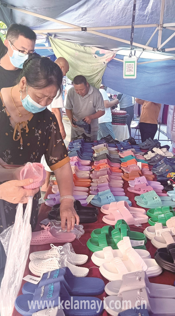 ????爆米花、烤鴨、油炸糕;兒童玩具、衣帽鞋襪、床上用品;瓜果生鮮、寵物綠植、副食五金……????“和好多年以前每個(gè)月二廠(chǎng)的展銷(xiāo)一樣,吃的、用的就擺在家門(mén)口,對(duì)我們來(lái)說(shuō),既方便又實(shí)惠。沒(méi)想到,多年以后,我們又找到了這樣的感覺(jué)?!闭驹跀偽磺疤暨x商品的白堿灘區(qū)(克拉瑪依高新區(qū))居民張阿姨興奮地說(shuō)。