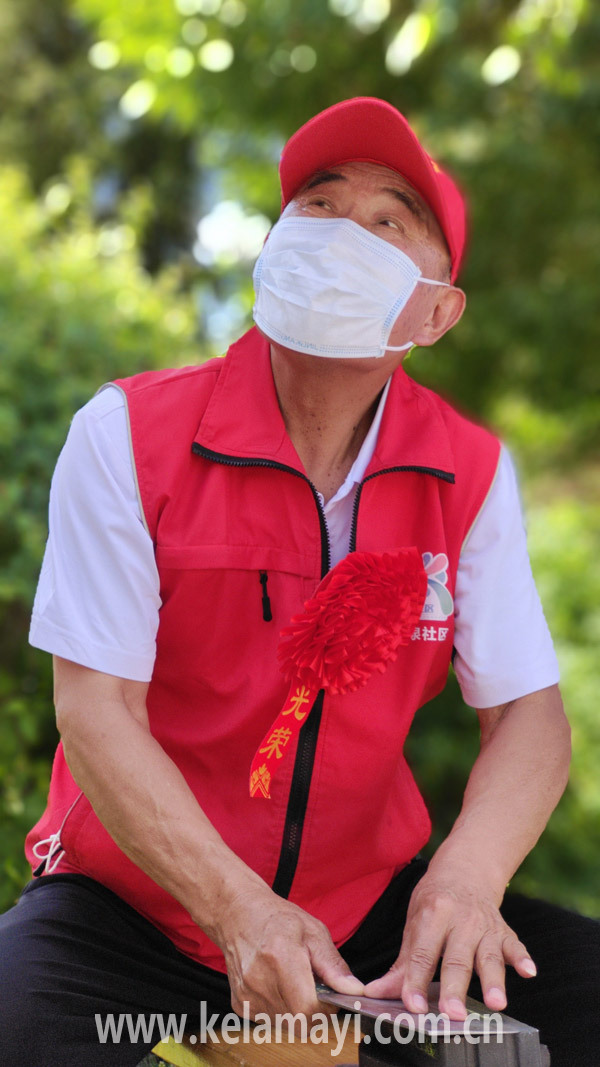 本報通訊員 郭寧 攝 鐵老漢優(yōu)秀志愿者佩戴紅花為民服務。
