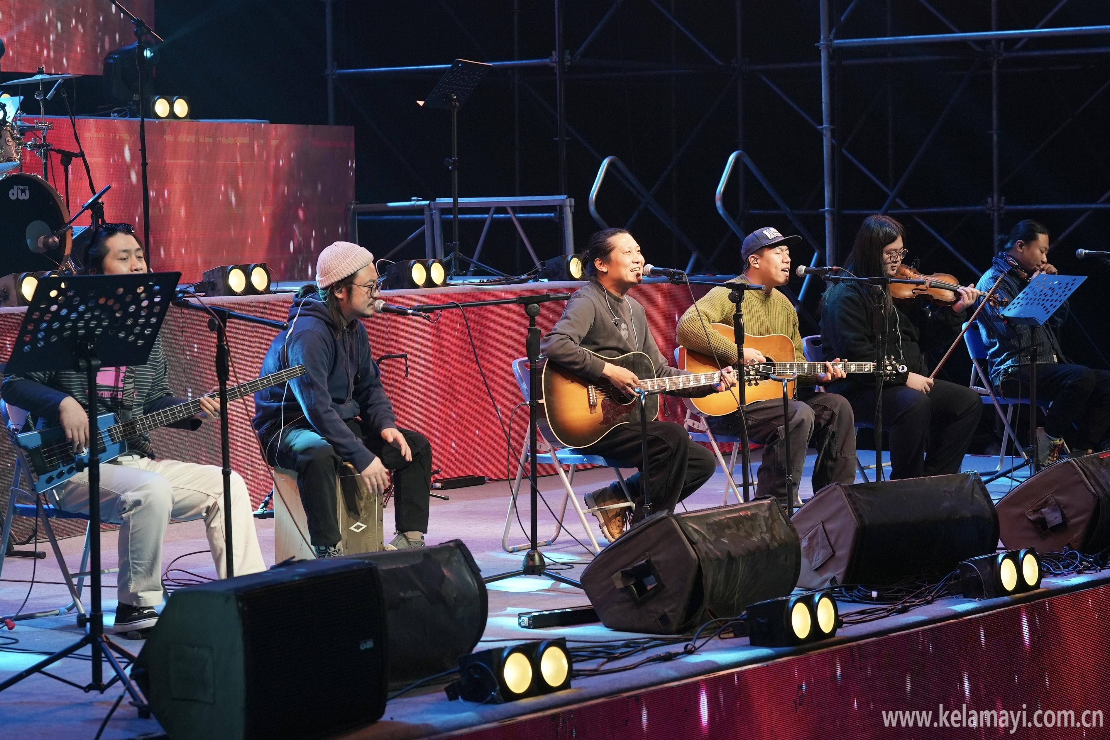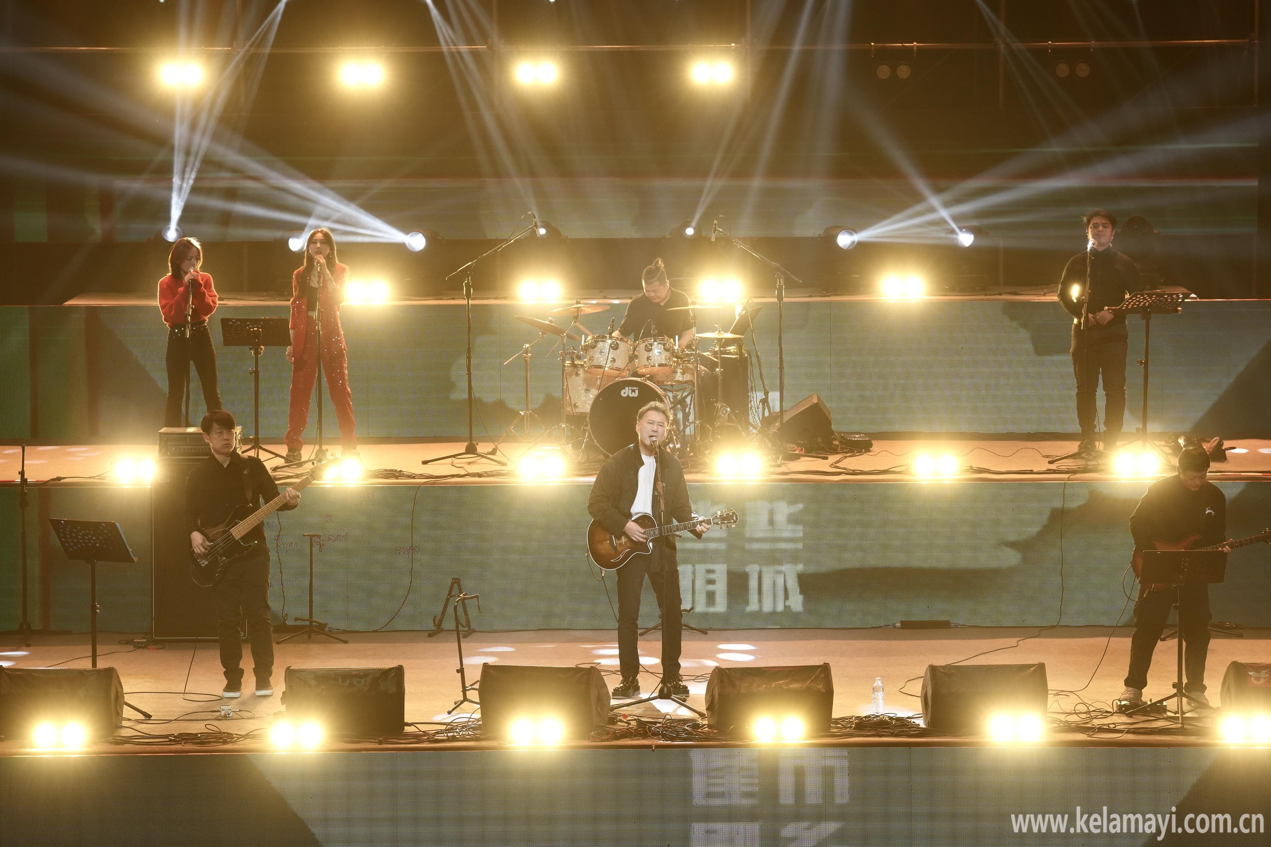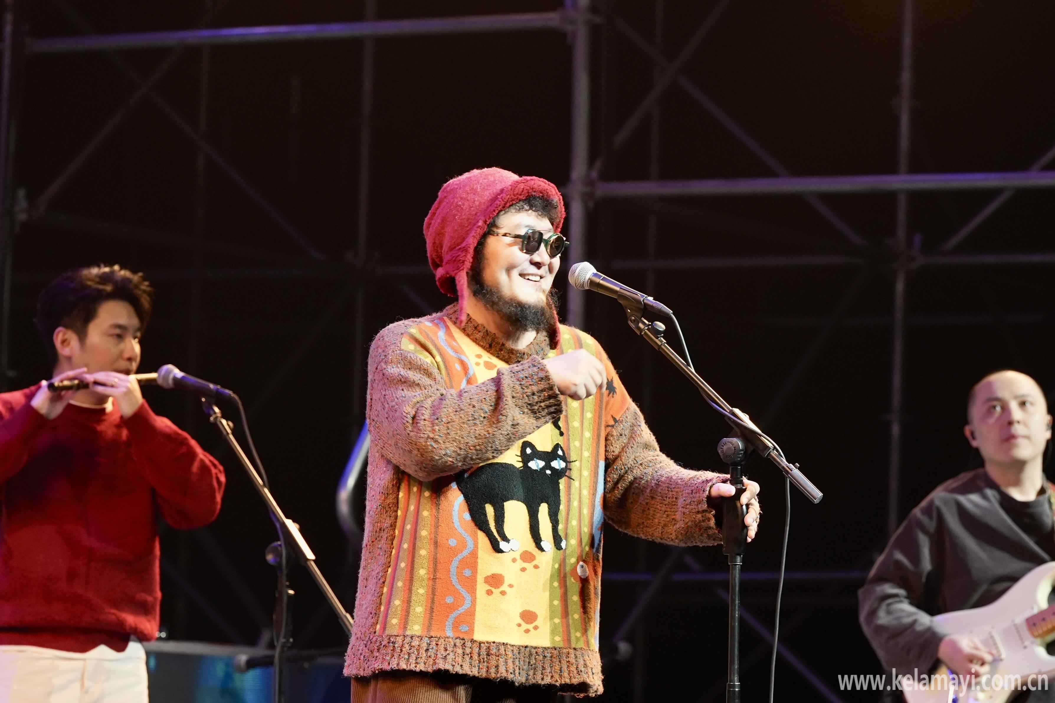 出生于克拉瑪依的馬條回到家鄉(xiāng),為父老鄉(xiāng)親演唱多首歌曲慶祝新年??死斠廊诿接浾?崔文娟 攝