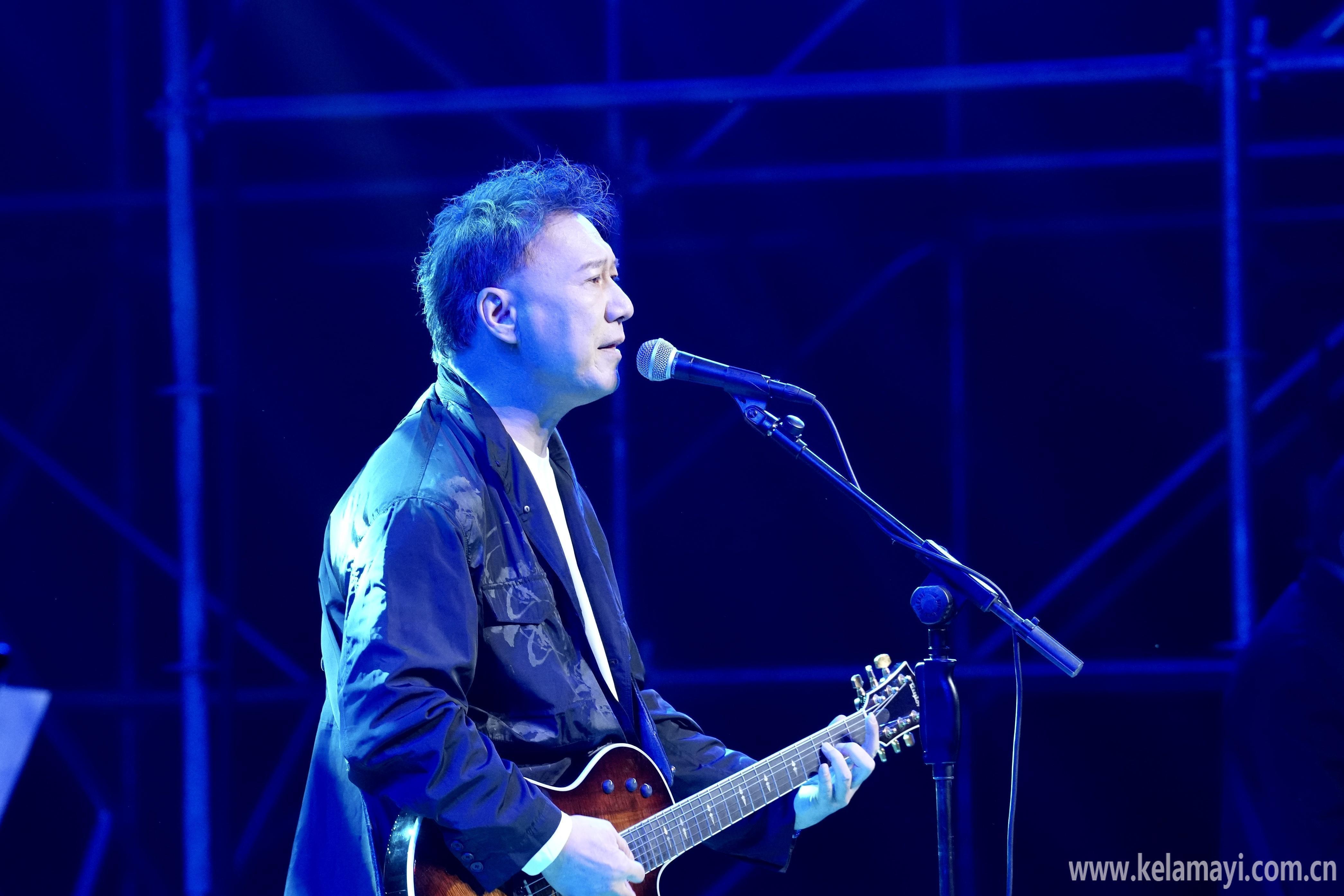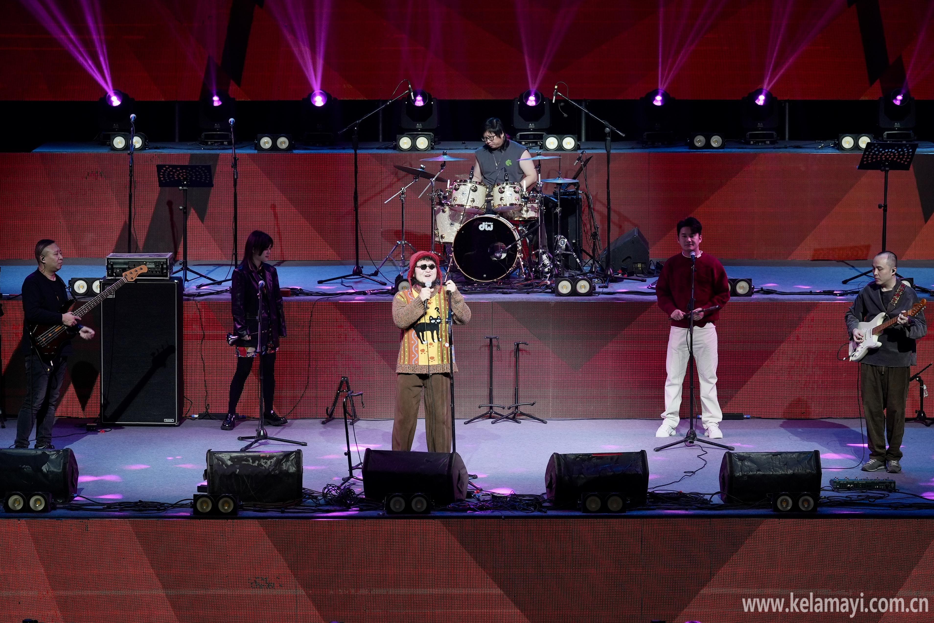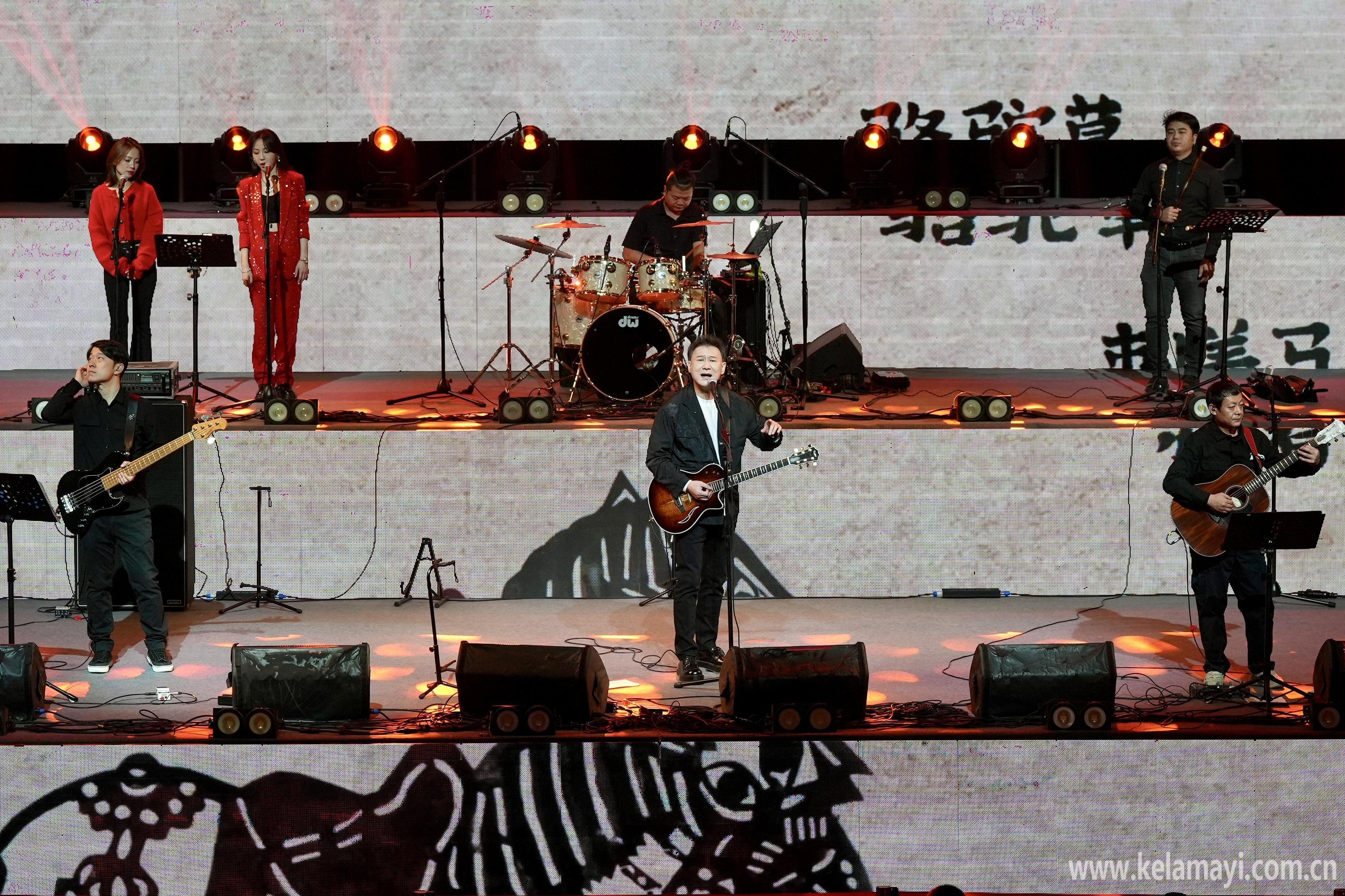 出生于克拉瑪依的馬條回到家鄉(xiāng),為父老鄉(xiāng)親演唱多首歌曲慶祝新年??死斠廊诿接浾?崔文娟 攝