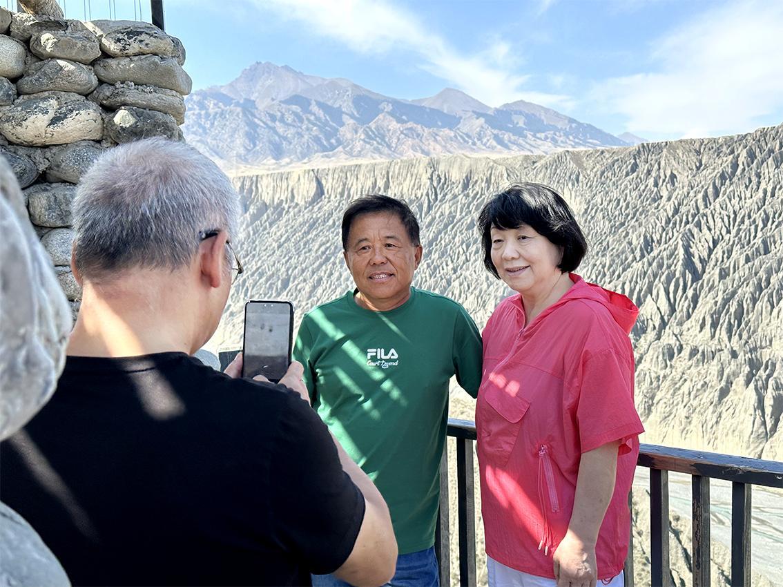 畢淑敏一行前往獨(dú)山子大峽谷參觀。克拉瑪依融媒記者 胡雪婷 攝