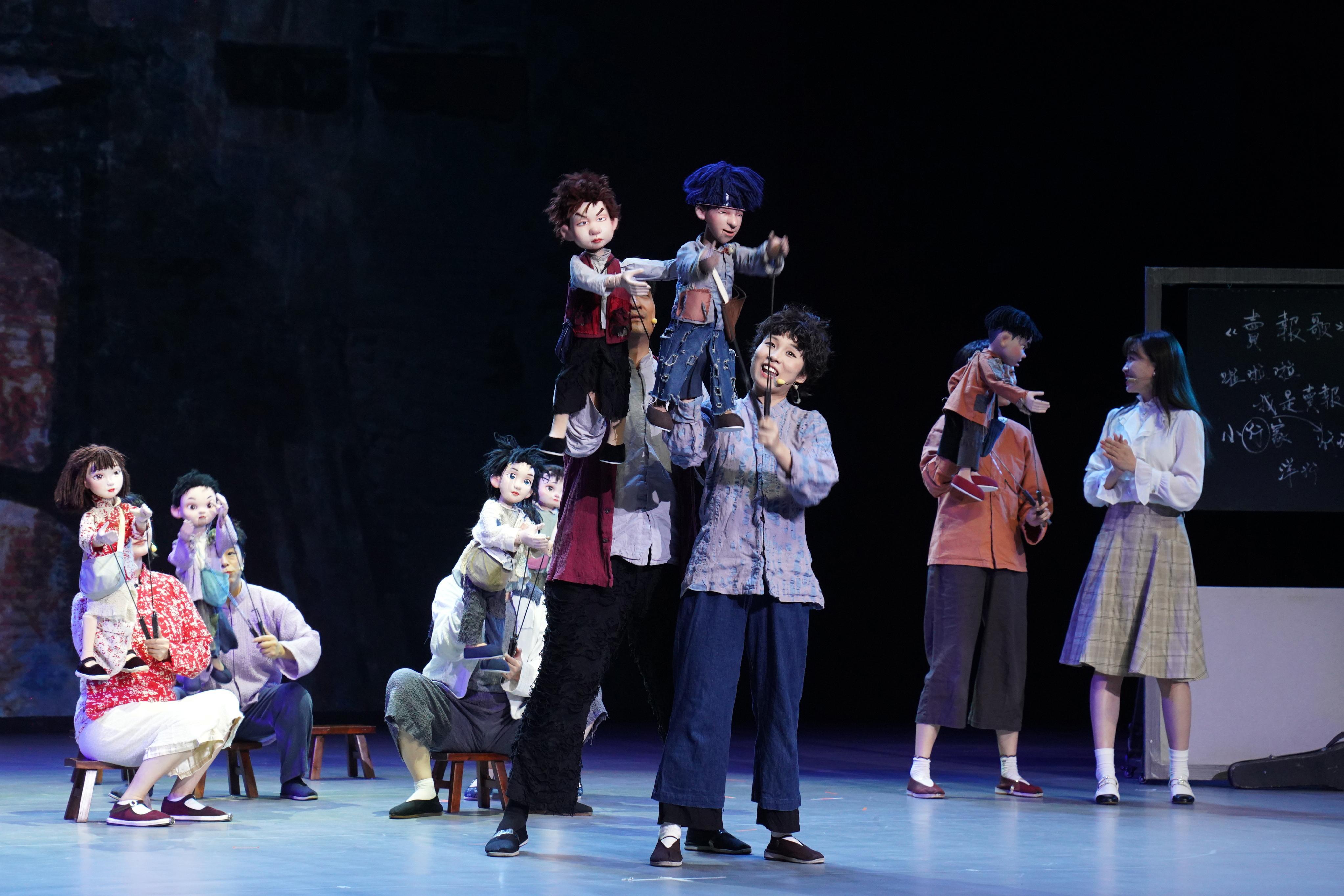 作為國內(nèi)首部木偶音樂劇,《報童之聲》突破傳統(tǒng)框架,將杖頭木偶、短杖頭木偶、橫挑木偶等多種木偶形式與歌舞表演結(jié)合。劇中木偶設(shè)計(jì)暗藏玄機(jī):可旋轉(zhuǎn)的西瓜頭、會“說話”的眉毛、伸縮自如的雙手……3D打印技術(shù)與傳統(tǒng)工藝的碰撞,讓木偶活靈活現(xiàn)。在多媒體光影技術(shù)打造的沉浸式場景中,觀眾跟隨小報童的腳步,在槍林彈雨與希望曙光中感受海派藝術(shù)的創(chuàng)新魅力。