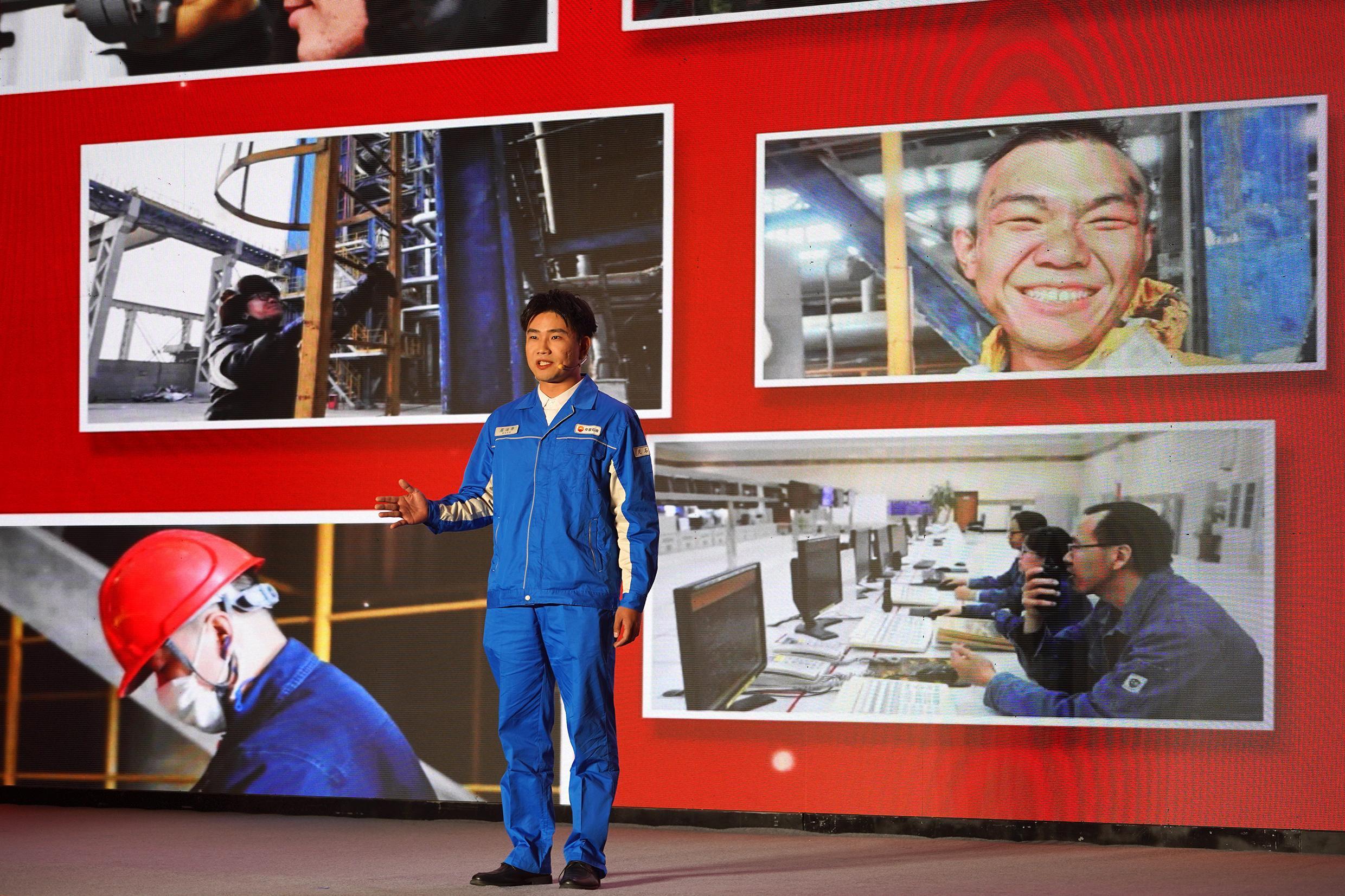 克石化煉油一部員工趙佳一作題為《共筑精神豐碑》的宣講。