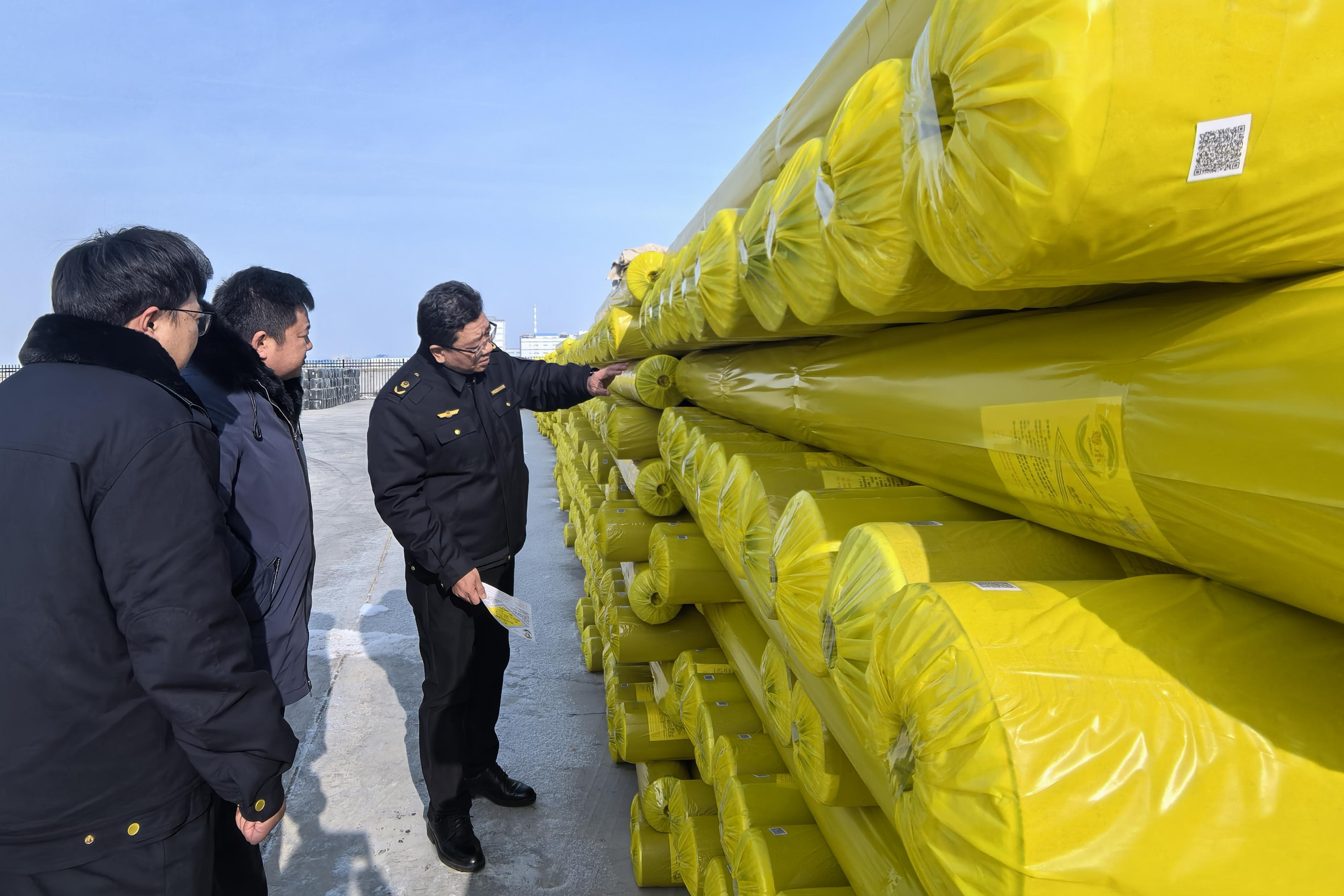 2月24日,市市場監(jiān)督管理局執(zhí)法人員檢查產(chǎn)品追溯碼和合格證標(biāo)識情況。茲典 攝