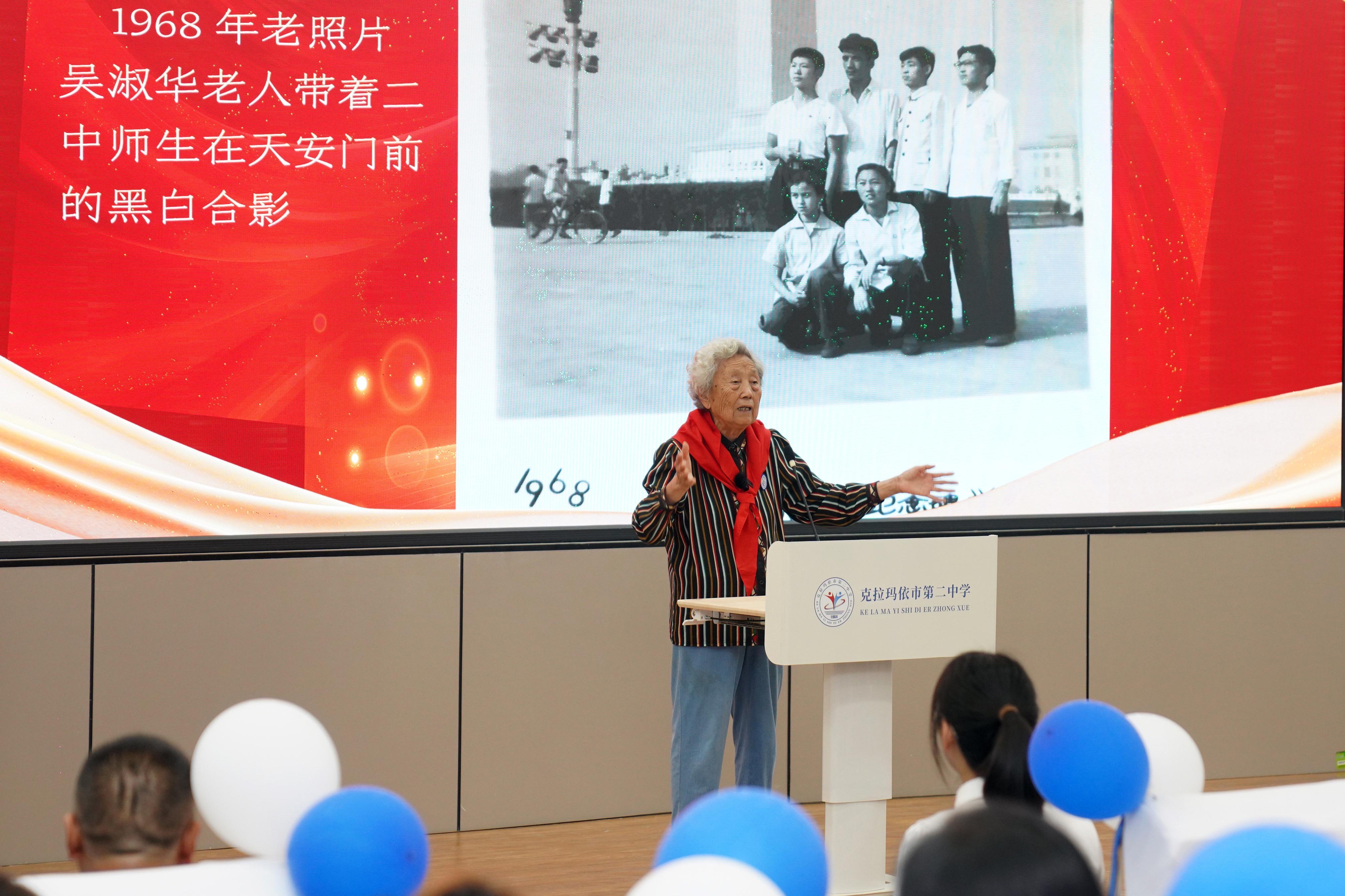 9月10日,市第二中學建校奠基者吳淑華在慶祝教師節(jié)活動上講述學校創(chuàng)立之初的珍貴往事。克拉瑪依融媒記者 非爾代維斯·熱夏提 攝