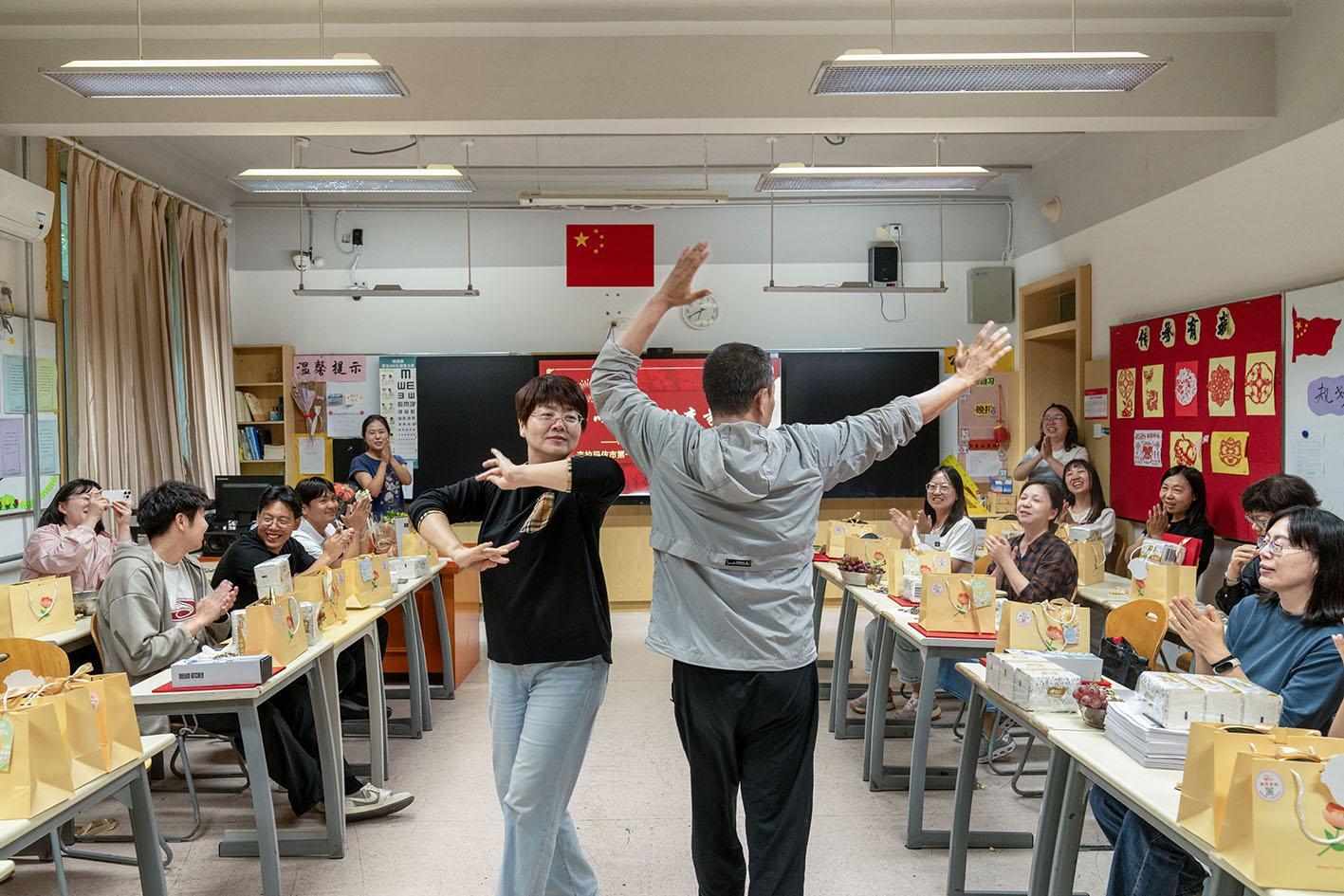 “從小我就有一個教師夢,這份向往像種子在心里生根發(fā)芽?!痹臃继峒埃?8年教育生涯中,見證學生從懵懂到成熟,讓她體會到“能把理想變成現(xiàn)實,是教育給我的第一份幸?!薄W鳛槲沂械谝粚檬屑壧丶壗處?,她感慨個人成長離不開時代舞臺,“能將所學奉獻給時代,實現(xiàn)教師價值,這種被需要、被認可的成就感,是澎湃于心的幸福?!比缃褚浴般y齡教師”身份重返崗位,她表示:“雖退離一線,卻能以新方式擁抱課堂,把經驗傳給年輕同仁,這種‘被需要’讓教育生命延續(xù),是歲月贈予的珍貴幸福?!?/p>