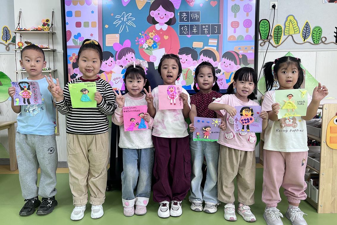 克拉瑪依區(qū)紅旗幼兒園以“童心送暖,感恩師恩”為主題打造沉浸式體驗活動:大一班用圖片、動畫展示“老師的一天”,讓孩子直觀感受教師工作;大二班以“老師喜歡什么”分組探索,為手工禮物注入心意;中三班引入“拱手禮”,讓幼兒在傳統(tǒng)禮儀中領悟感恩文化,稚嫩動作與真誠笑容成為教師節(jié)暖景;小三班孩子用超輕黏土捏小花,用彩紙折愛心,在動手實踐中傳遞祝福。