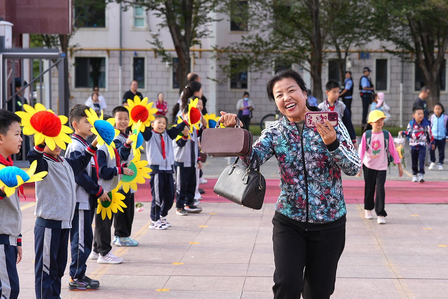 9月10日,市實驗小學教師在學生的夾道歡迎中走進校園??死斠廊诿接浾?崔文娟 攝