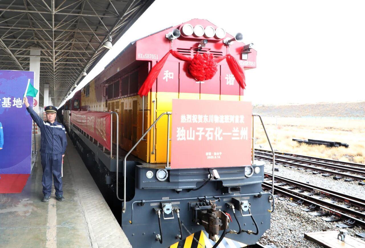 9月14日,獨(dú)山子石化—蘭州東川物流集散基地鐵路班列開行。(據(jù)“獨(dú)山子在線”官微)