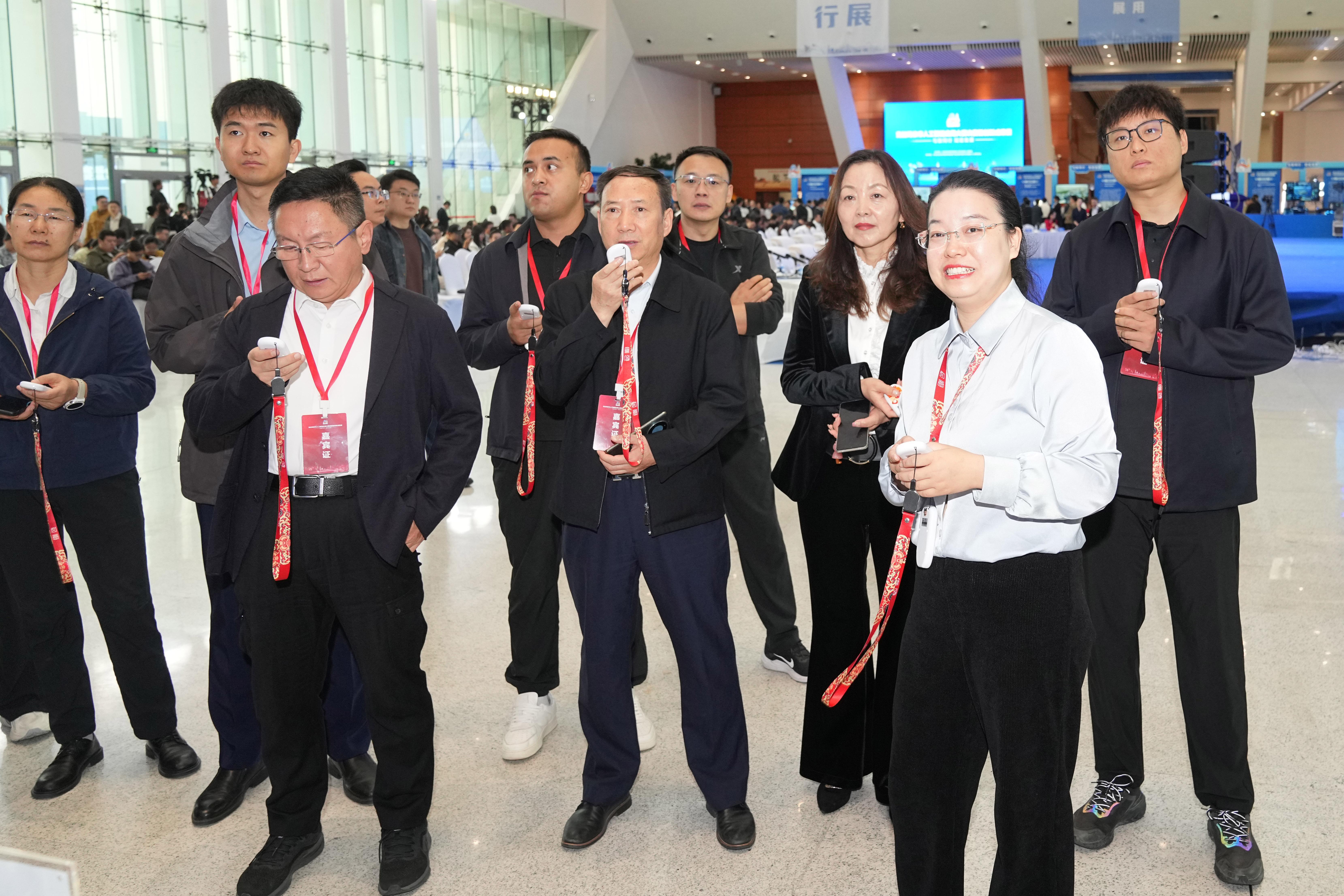 現(xiàn)場(chǎng)嘉賓參觀集中展示的17項(xiàng)人工智能創(chuàng)新成果??死斠廊诿接浾?閔勇 攝
