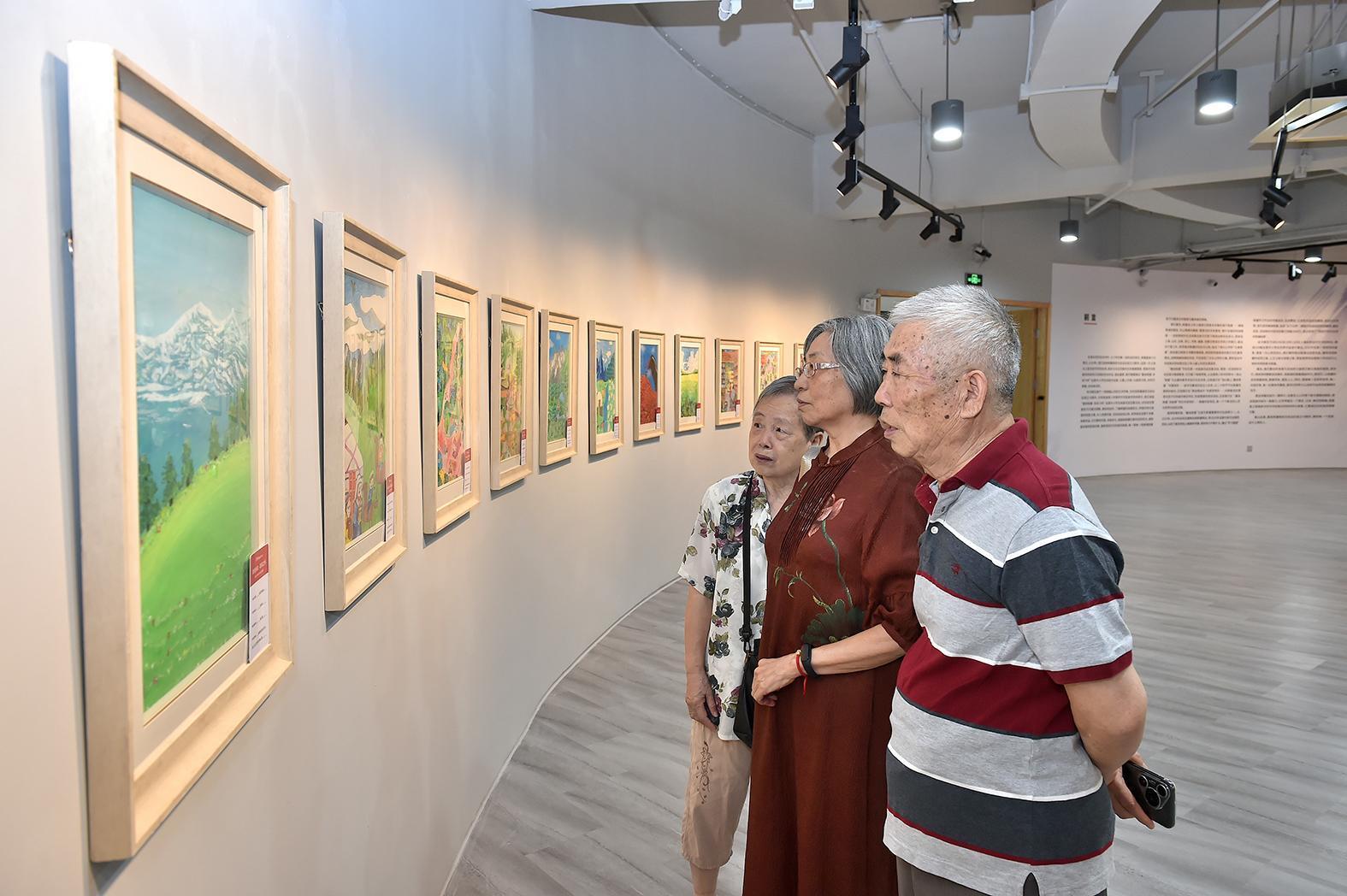 上海市民、繪畫愛好者在現(xiàn)場觀看畫展。圖片均由克拉瑪依融媒特派記者 努爾夏提·尼加提 攝