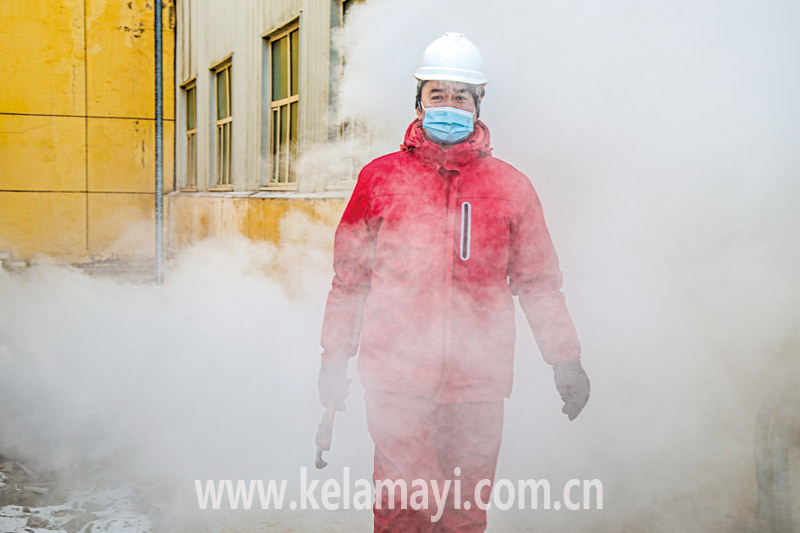 零下20℃,宇澄熱力公司技術(shù)員張勝利準(zhǔn)備關(guān)閉鍋爐凍堵的疏水閥門(mén)。圖片由宇澄熱力公司提供