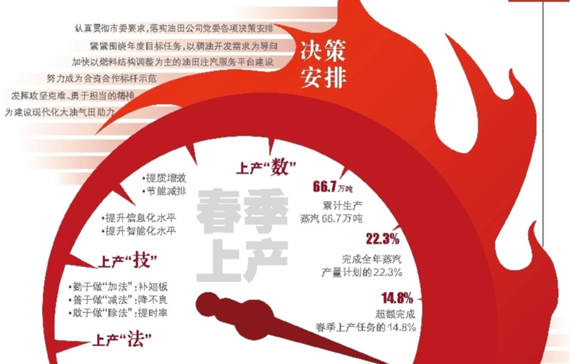 ????2021年,新疆油田公司下達(dá)宇澄熱力公司全年計(jì)劃蒸汽產(chǎn)量303萬(wàn)噸,截至目前,宇澄熱力公司已完成全年蒸汽產(chǎn)量計(jì)劃的22.3%,超額完成春季上產(chǎn)任務(wù)的14.8%。