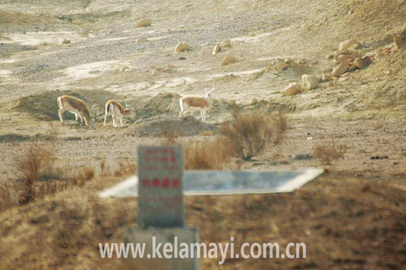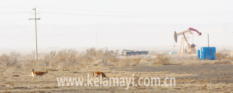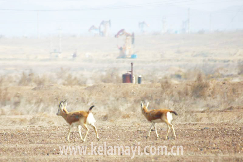 鵝喉羚在油田生產(chǎn)區(qū)嬉戲。