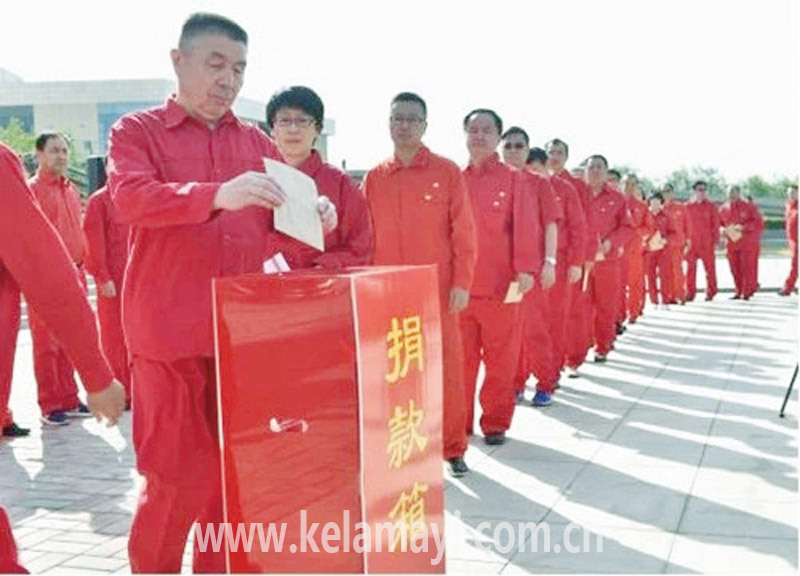 新疆油田公司員工積極參加“一元捐”石油助學(xué)活動(dòng)。(攝于疫情前)