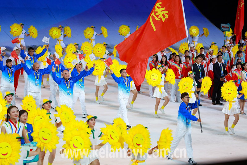 在開幕式上,于詩瑞作為新疆代表團(tuán)旗手入場。