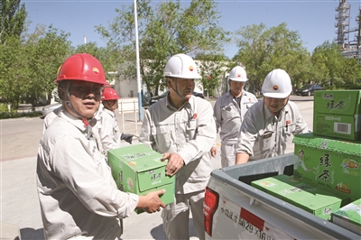 公司工會(huì)為煙氣脫硝脫硫裝置建設(shè)施工人員送去清涼飲料。