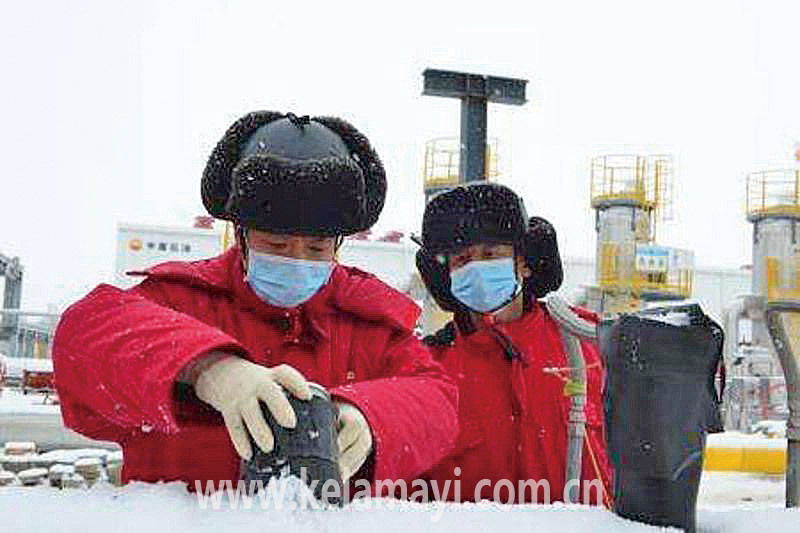 ????當天,呼圖壁儲氣庫集注站運維一班員工黃海峰和俞朝輝嚴格操作規(guī)程,仔細調整管道注醇注入量,防止管線凍堵。