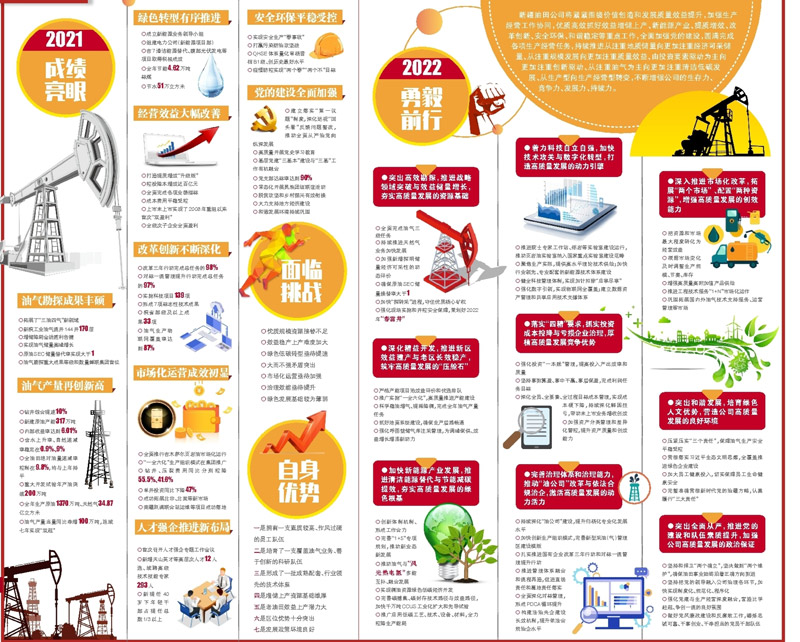 ????剛剛過(guò)去的一年,面對(duì)百年變局和世紀(jì)疫情交織疊加、增儲(chǔ)上產(chǎn)任務(wù)艱巨、綠色低碳轉(zhuǎn)型約束加大等復(fù)雜嚴(yán)峻形勢(shì),公司上下全面落實(shí)集團(tuán)公司黨組各項(xiàng)決策部署,沉著應(yīng)對(duì)各項(xiàng)風(fēng)險(xiǎn)挑戰(zhàn)特別是巨大經(jīng)營(yíng)壓力,迎難而上、苦干實(shí)干,取得了好于預(yù)期的生產(chǎn)經(jīng)營(yíng)業(yè)績(jī),實(shí)現(xiàn)了“十四五”良好開(kāi)局。