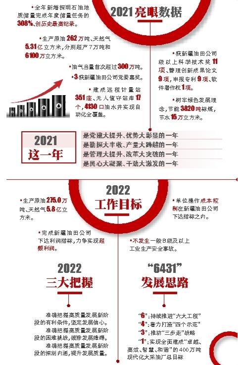 ????2021年,是采油二廠“三步走”戰(zhàn)略目標(biāo)開局起步、改革發(fā)展提質(zhì)升級(jí)的關(guān)鍵之年。面對(duì)嚴(yán)峻復(fù)雜的挑戰(zhàn)和艱巨繁重的生產(chǎn)經(jīng)營任務(wù),采油二廠堅(jiān)決落實(shí)新疆油田公司黨委各項(xiàng)工作安排,扎實(shí)推進(jìn)“六大工程”,著力打造“四個(gè)示范”,原油產(chǎn)量加速增長,經(jīng)營效益顯著提升,管理機(jī)制更趨完善,各項(xiàng)業(yè)績(jī)指標(biāo)全面協(xié)調(diào)發(fā)展,在“十四五”開局之年取得了油氣當(dāng)量突破300萬噸的佳績(jī)。
