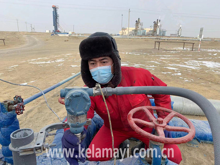 2月10日,風(fēng)城SAGD一號(hào)采油站重1采油班員工正對(duì)現(xiàn)場(chǎng)設(shè)備進(jìn)行檢查。通訊員 史婉茹 洪苗 攝