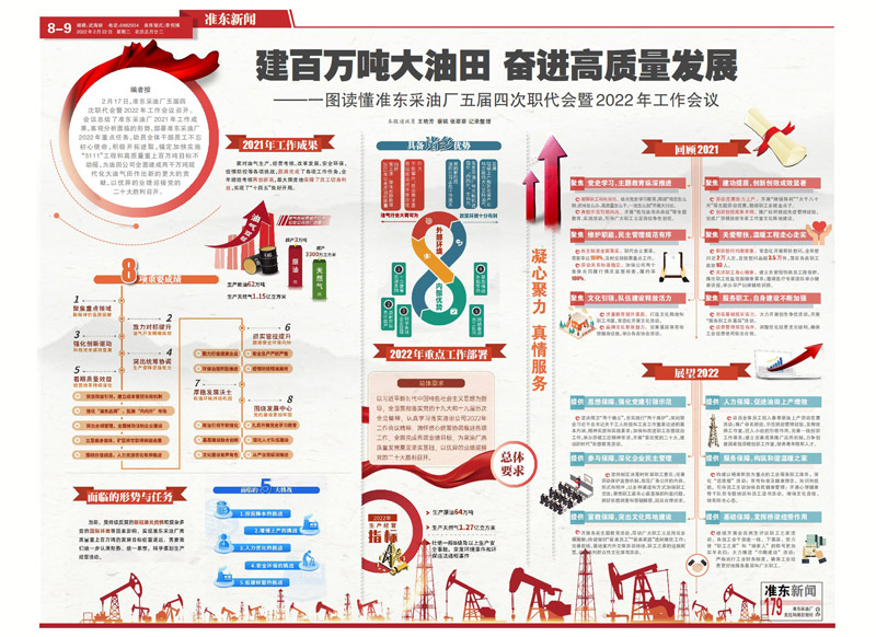 ????2月17日,準(zhǔn)東采油廠五屆四次職代會(huì)暨2022年工作會(huì)議召開。會(huì)議總結(jié)了準(zhǔn)東采油廠2021年工作成果,客觀分析面臨的形勢(shì),部署準(zhǔn)東采油廠2022年重點(diǎn)任務(wù),動(dòng)員全體干部員工不忘初心使命,積極開拓進(jìn)取,錨定加快實(shí)施“5111”工程和高質(zhì)量重上百萬噸目標(biāo)不動(dòng)搖,為油田公司全面建成兩千萬噸現(xiàn)代化大油氣田作出新的更大的貢獻(xiàn),以優(yōu)異的業(yè)績(jī)迎接黨的二十大勝利召開。