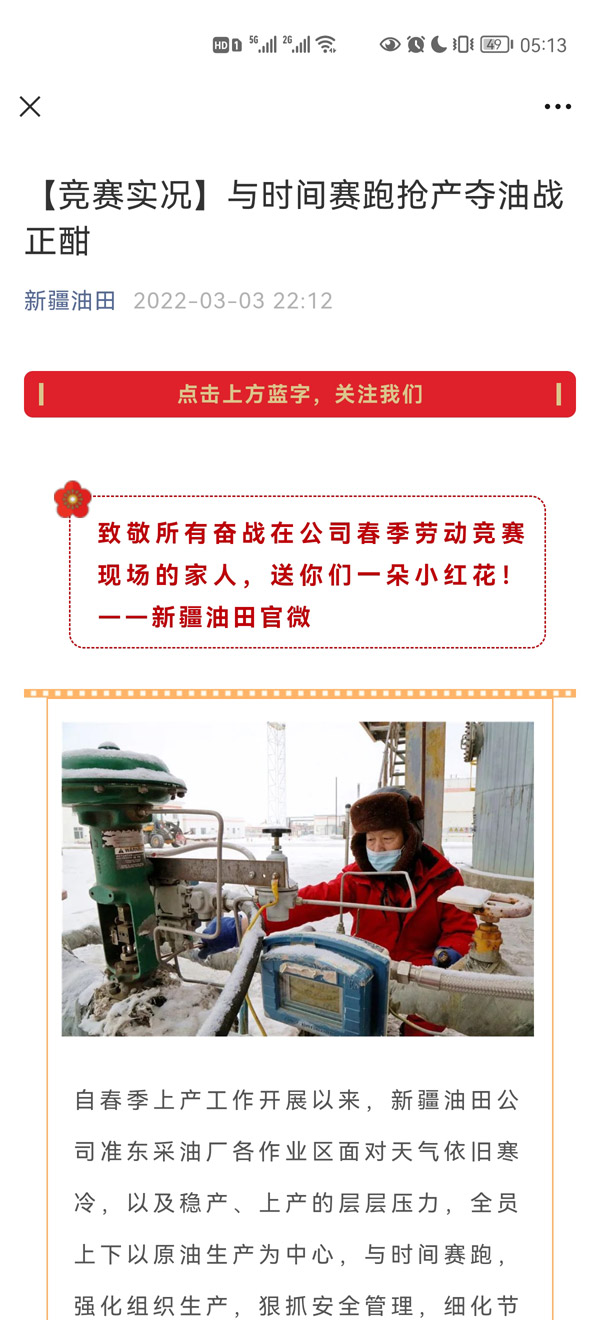 ????@采油二廠三次采油作業(yè)區(qū)王占偉說(shuō):作為注入指標(biāo)崗人員,我的工作目標(biāo)是對(duì)所管轄的區(qū)塊做好“精細(xì)”注水工作,實(shí)現(xiàn)不超注、不欠注。