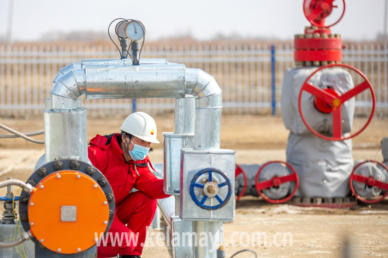 3月10日,吉慶油田作業(yè)區(qū)(吉木薩爾頁(yè)巖油項(xiàng)目經(jīng)理部)員工在58號(hào)平臺(tái)巡檢。通訊員 張昀 攝