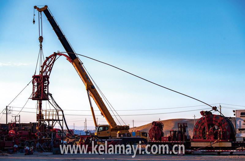 4月13日,應(yīng)急搶險(xiǎn)救援中心作業(yè)隊(duì)伍正在使用連續(xù)油管進(jìn)行儲層解堵作業(yè)。 本報(bào)通訊員 康陽攝