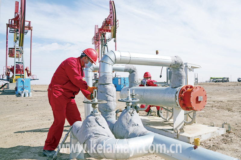 本版圖片由本報全媒體記者 非爾代維斯·熱夏提 攝 在風(fēng)城油田作業(yè)區(qū),工人正在巡井。