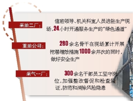 ????重油公司一方面將精細(xì)措施管理作為確保產(chǎn)量穩(wěn)中有升的“落腳點(diǎn)”,選派280余名優(yōu)秀骨干值守生產(chǎn)現(xiàn)場,認(rèn)真抓好三張運(yùn)行大表的落實(shí)跟蹤情況,累計(jì)開展挖潛增效措施1000余井次;一方面將安全環(huán)保升級管理作為保障生產(chǎn)安全平穩(wěn)的“基準(zhǔn)點(diǎn)”,各基層單位節(jié)日期間升級風(fēng)險(xiǎn)管控、應(yīng)急處置措施,堅(jiān)持領(lǐng)導(dǎo)干部帶班作業(yè),跟蹤作業(yè)全過程,營造了安全高效的生產(chǎn)氛圍。