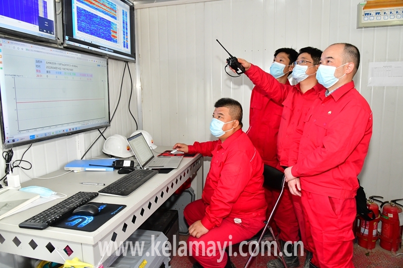 本報(bào)通訊員 裘新農(nóng) 圖新疆油田科研人員正在對(duì)JLHW2039試驗(yàn)井的監(jiān)測結(jié)果進(jìn)行解釋分析。