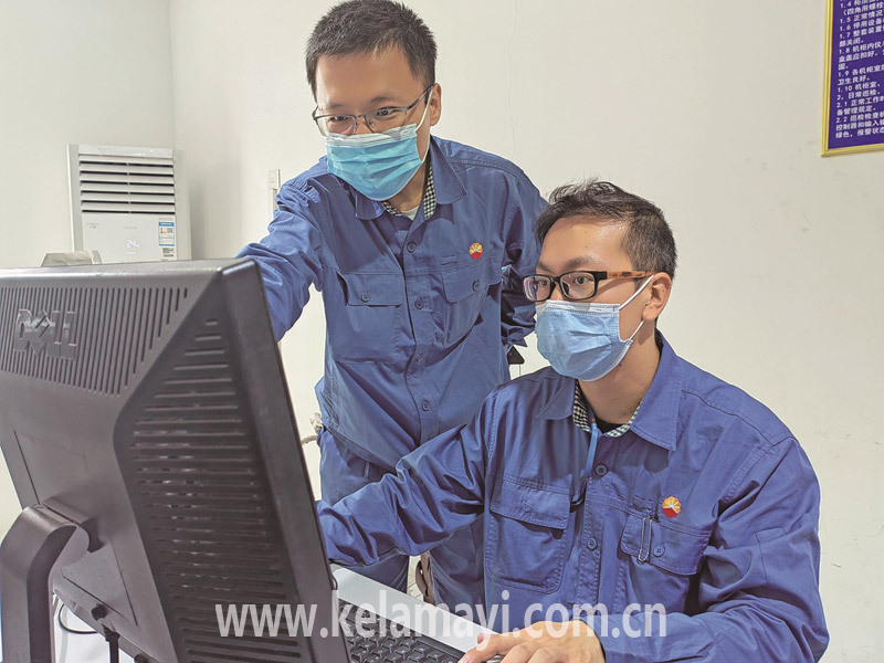 克石化公司信息中心軟件組成員正在測(cè)試信號(hào)。本報(bào)通訊員 丁恬甜 攝
