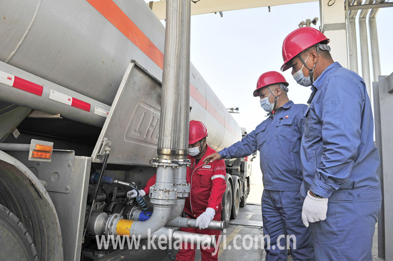 克石化公司員工進(jìn)行裝車前安全檢查。 本報通訊員 米爾夏提·尼加提 攝