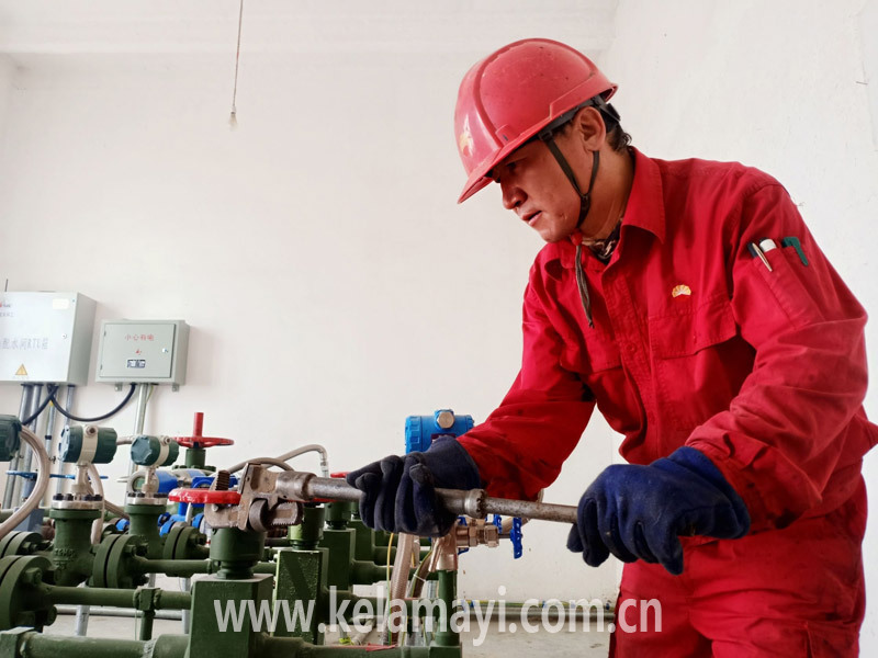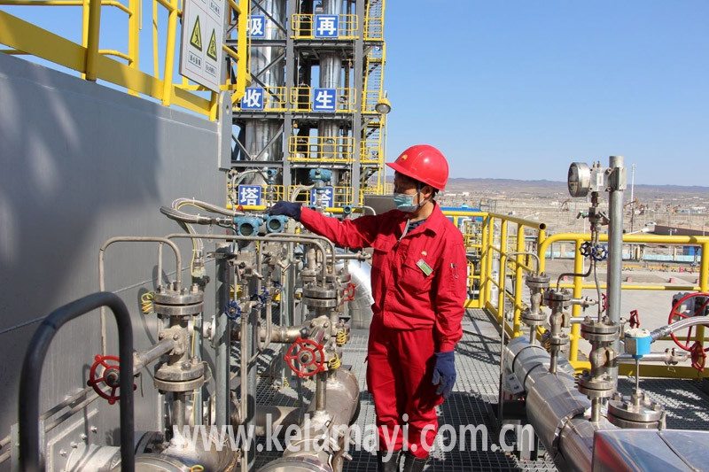 采油二廠員工在天然氣處理站檢查工藝區(qū)流程,保障設備正常運行。 本報通訊員 王新萍 攝