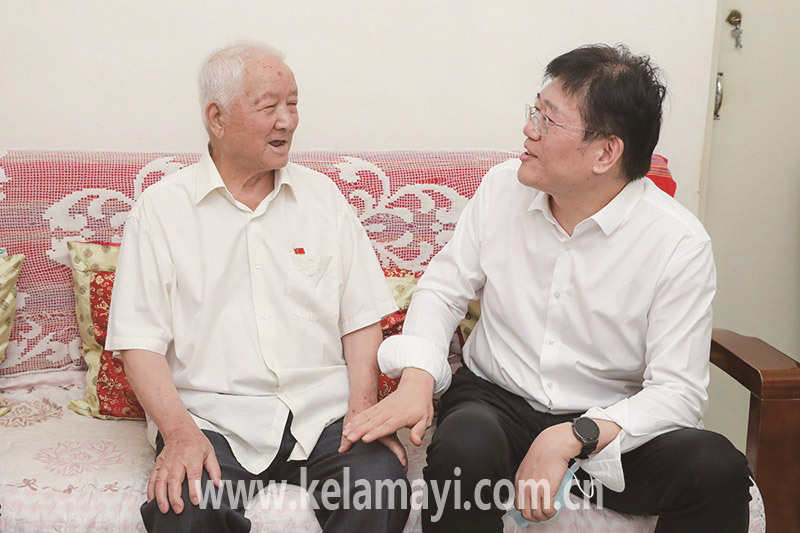 本報(bào)特約記者 徐志遠(yuǎn) 攝 6月29日,新疆油田公司黨委書記、執(zhí)行董事楊立強(qiáng)看望慰問了有著73年黨齡的老兵張林桓。