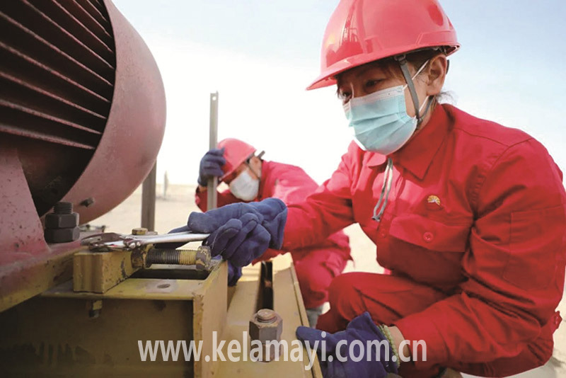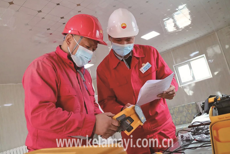 新疆油田公司員工正在排查現(xiàn)場隱患。