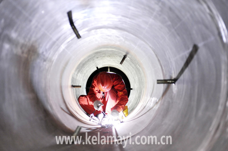 施工人員正在管線焊接作業(yè)。 本報(bào)通訊員 米爾夏提·尼加提 攝